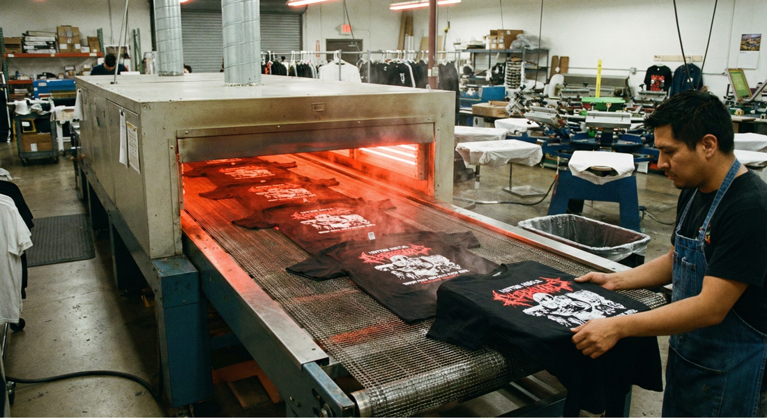 Đây là bước nhiều xưởng bỏ qua để tiết kiệm điện. Hình in xong phải được cho qua máy sấy băng tải ở nhiệt độ chuẩn (thường 160°C)