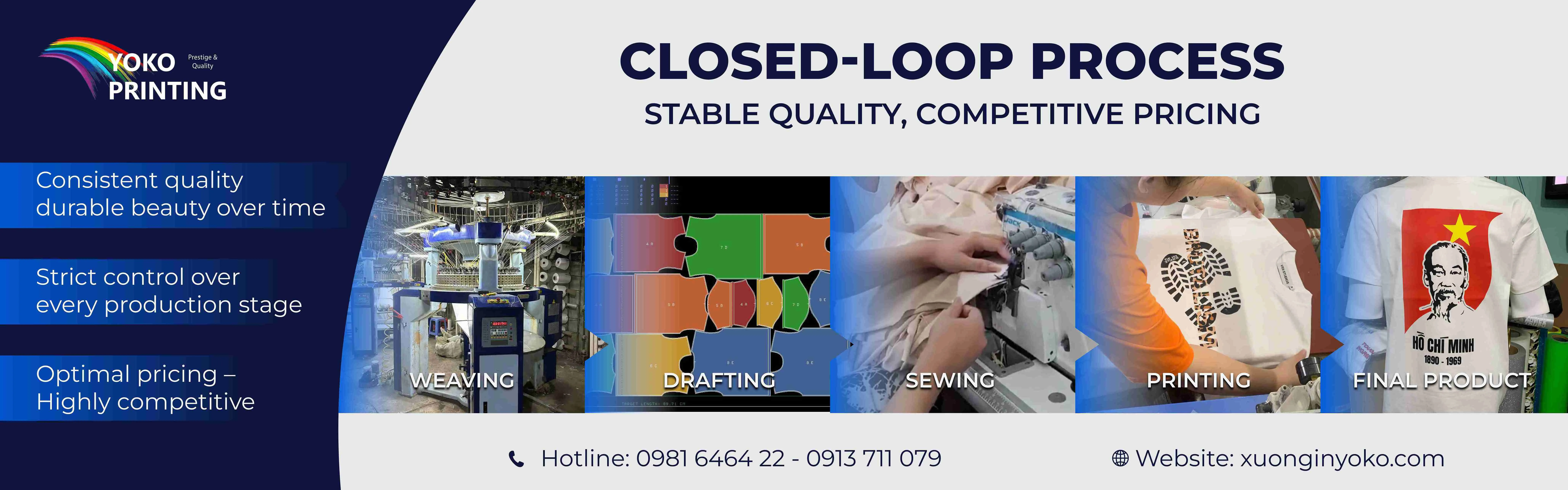 YOKO PRINTING - With over 9 years of experience in the fashion printing industry, we provide uniform printing and outsourcing printing solutions for local brands with advanced technology, high-quality materials and strict quality control processes. Committed to sharpness, high durability, competitive prices, YOKO accompanies fashion brands to create their own mark.