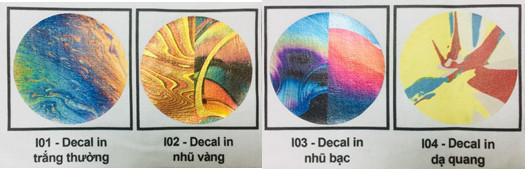 I01 - Decal in trắng thường: Được in trên lớp phôi trắng, lên màu sắc chuẩn.